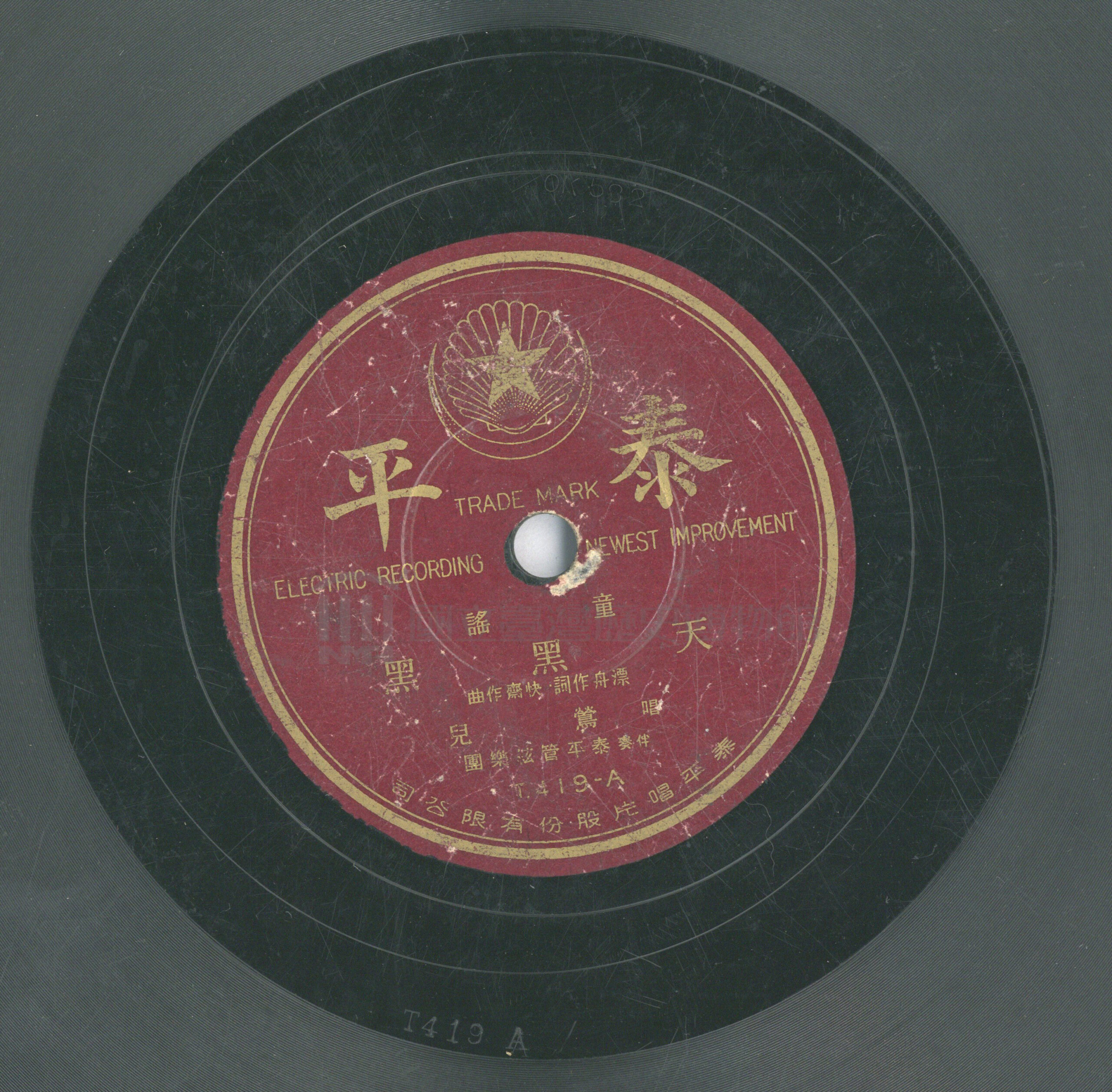 天黑黑 演出者鶯兒演唱創作者漂舟作詞 快齋作曲關鍵詞#唱歌 #童謠內容創作兒歌唱片,描述下雨天街道景象,因僅存唱片,而這首歌單憑音檔歌詞不易辨識,解讀較為困難。 這首歌與一般熟悉的〈天黑黑〉不同,現在普遍會唱的童謠〈天黑黑〉為1965年林福裕製作的合唱曲,這首1934年的唱片錄音,是更早依據民間歌謠製作的歌曲。 作詞者漂舟本名黃耀鏻 (又寫作黃耀麟),是當時活躍於文壇的詩人,作曲者快齋本名邱創忠,原為公學校教師,在泰平唱片發表不少作品。聲音載體留聲機唱片發行編號泰平T419專輯年份《童謠:天黑黑、放風吹》1934專輯資訊創作臺語兒歌唱片其他曲目B-放風吹來源專案臺史博館藏錄音 歌詞/全文 相關照片