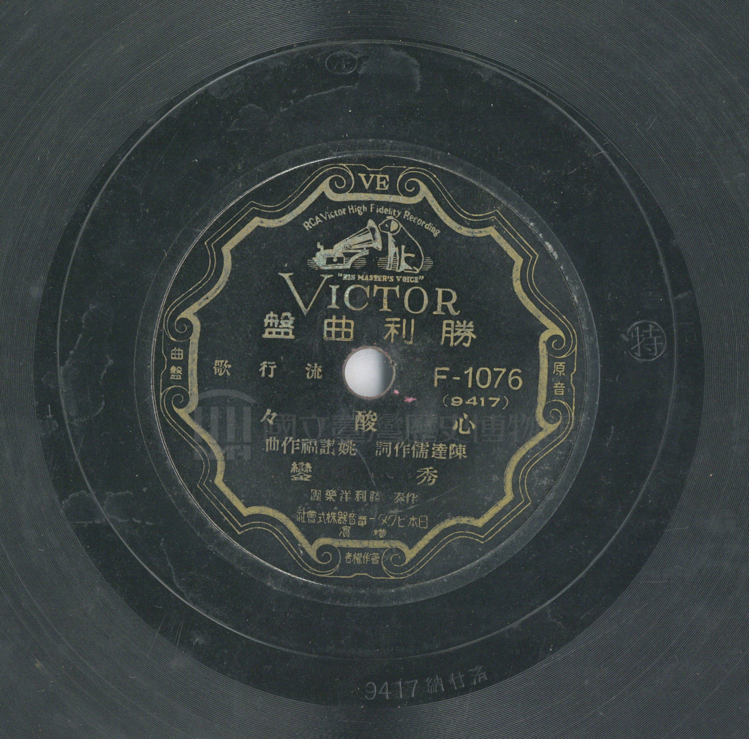 心酸酸 演出者秀鑾演唱 洋樂伴奏伴奏創作者陳達儒作詞 姚讚福作曲關鍵詞#唱歌 #流行歌 #小曲內容聲音載體留聲機唱片發行編號勝利F1076專輯年份《流行歌/流行小曲:心酸酸、雙雁影》1936其他曲目B-雙雁影來源專案臺史博館藏錄音 歌詞/全文 (一) 我君離開千里遠 放阮冷淡守家門 未食未睏腳手軟 暝日思君心酸酸 (二) 無疑一去無倒返 辜負青春暝暝長 連批連信煞來斷 害阮等無心酸酸 (三) 一時變心抹按算 秋風慘淡草木黃 風冷情冷是無望 光景引阮心酸酸 相關照片