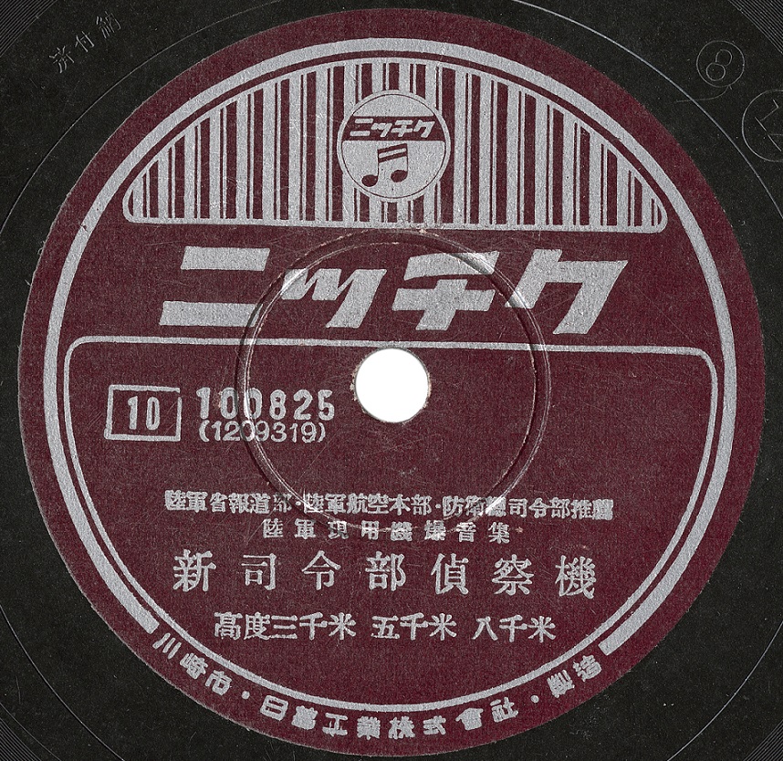 內容為偵查機於高度三千米、五千米、八千米掠過的錄音,作為戰爭時期防空教育之用。 陸軍省報道部、陸軍航空本部 編輯製作。