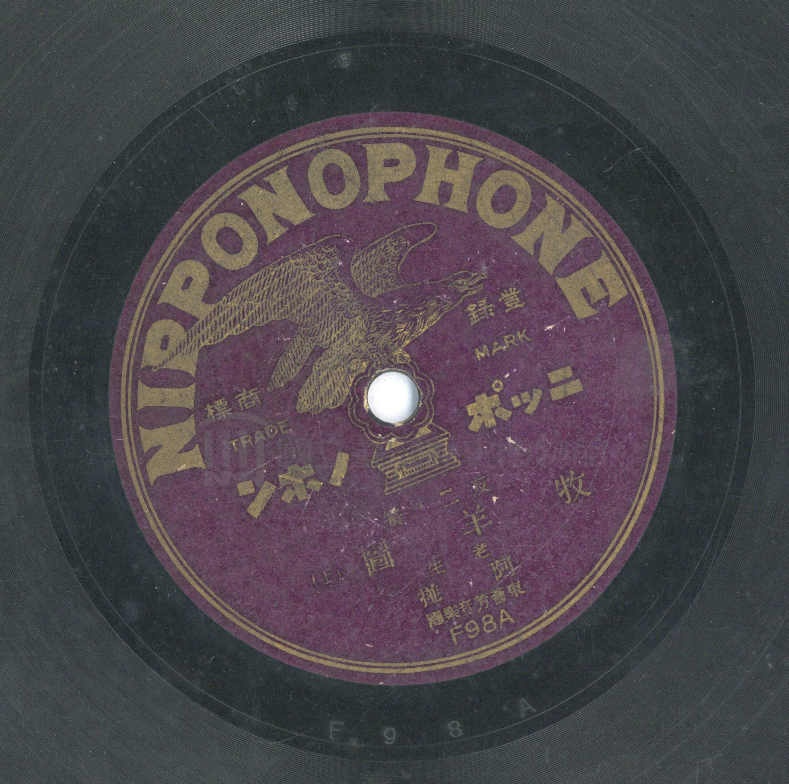 牧羊圖 (上) 演出者阿掽 (老生)演唱關鍵詞#小曲 #京音 #平劇 #藝旦內容依據日日新報報導為1926年5月在臺北灌錄。聲音載體留聲機唱片發行編號日蓄 (鷹標紫色)F98專輯年份《反二.簧:牧羊圖》1926其他曲目B-牧羊圖 (下)來源專案臺史博館藏錄音 歌詞/全文 相關照片