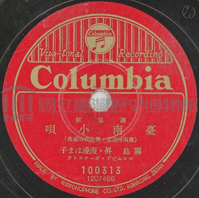臺南小唄 演出者霧島昇、渡邊はる子演唱創作者臺南州撰定作詞 臺南州撰定作曲關鍵詞#節慶歌謠 #創作民謠 #地方歌謠 #台南內容日本統治時期地方政府募集的日語歌謠,經官方及日本民間機構宣傳。聲音載體留聲機唱片發行編號日本コロムビア (古倫美亞)100313專輯年份《新民謠:嘉南小呗》1941其他曲目B-台南音頭來源專案臺史博館藏錄音 歌詞/全文 相關照片