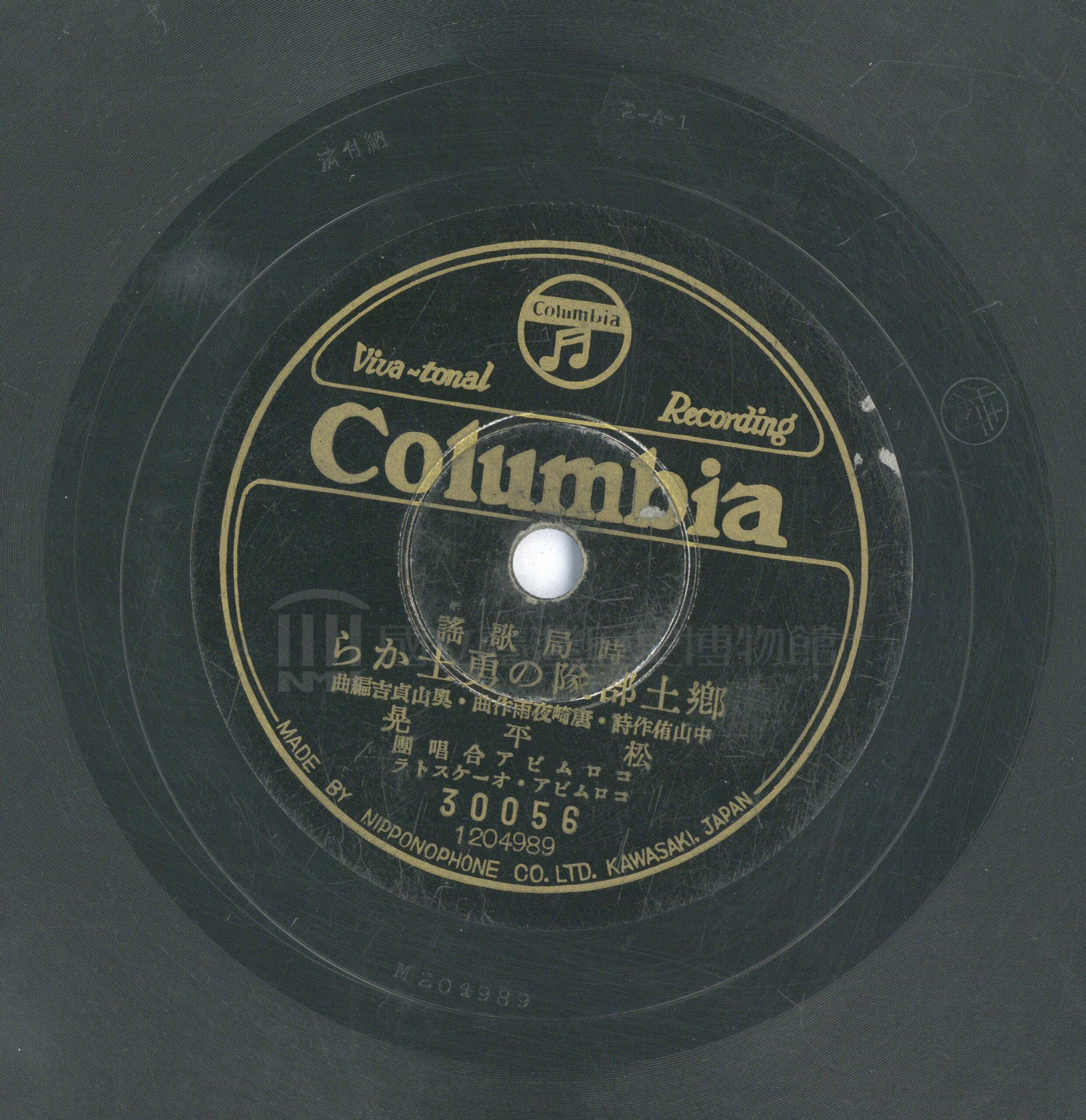 鄉土部隊の勇士から (鄉土部隊勇士的來信) 演出者松平晃演唱創作者中山侑作詞 唐崎夜雨作曲關鍵詞#唱歌 #流行歌 #戰爭時局內容作曲唐崎夜雨即鄧雨賢,為鄧雨賢在東京古倫美亞本社發表之名作品。奧山貞吉編曲。聲音載體留聲機唱片發行編號日本コロムビア (古倫美亞)30056專輯年份《時局歌謠/流行歌:鄉土部隊の勇士から、月のコロムス》1939年01月其他曲目B-月のコロムス (月昇鼓浪嶼)來源專案臺史博館藏錄音 歌詞/全文 (一) 島のバナナが喰べたいと 若い戦友の独り言 戦の済んだひと時は 僕も曙喫いたいな (二) 月の露営の歩哨線 遠い夜空の海越えて 椰子の葉茂る故郷が いつか瞼に蘇る 相關照片